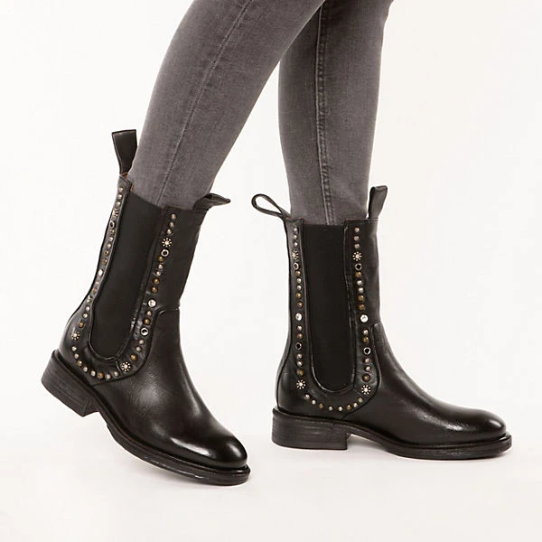 Die Chelsea Boots aus dem Hause A.S.98 sorgen stets für einen schicken Style. Das Fußbett besteht aus natürlich atmungsaktivem Echtleder, das ein komfortables Trageerlebnis unterstützt. Der Blockabsatz kombiniert einen femininen Auftritt mit hohem Komfort. In die Schuhe kann schnell und einfach hineingeschlüpft werden. Das Obermaterial zeichnet sich durch das echte Rindsleder aus.