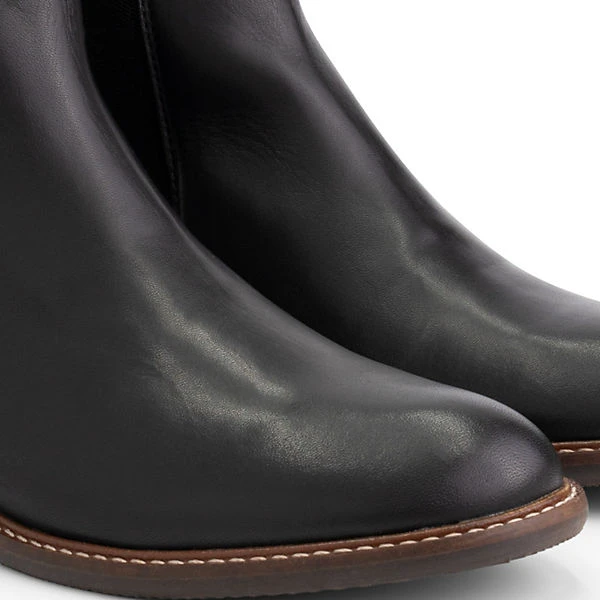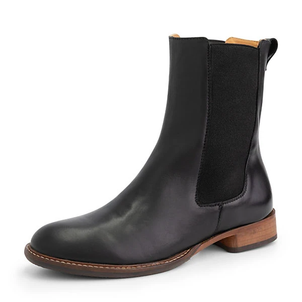 Mysa Ambrozia ist ein Chelseastiefel aus Leder. Der Stiefel ist vollständig mit Leder gefüttert und hat ein herausnehmbares Fußbett aus weichem Schaumstoff mit einer Lederschicht. Die Sohle hat ein Profil für zusätzlichen Halt.