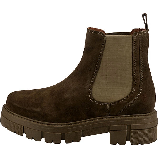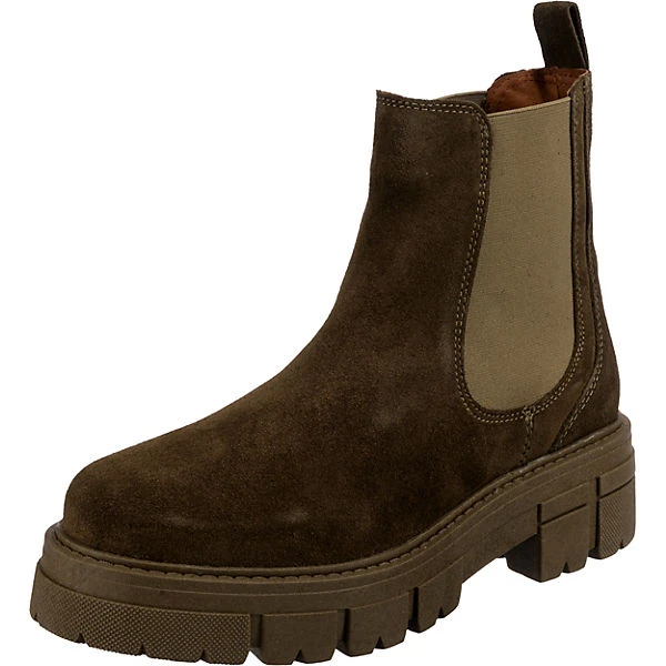 Unterstreichen Ihre Garderobe: Diese trendigen Chelsea Boots von der Marke Apple of Eden. Für ein komfortables Tragegefühl besteht das Fußbett aus Leder. Das Paar ist wärmend gefüttert. Das Obermaterial überzeugt durch echtes Veloursleder. Der niedrige Blockabsatz unterstreicht den ansprechenden Look. Das Schuhpaar kommt ohne jeglichen Verschluss aus, sodass ganz einfach hineingeschlüpft werden kann.