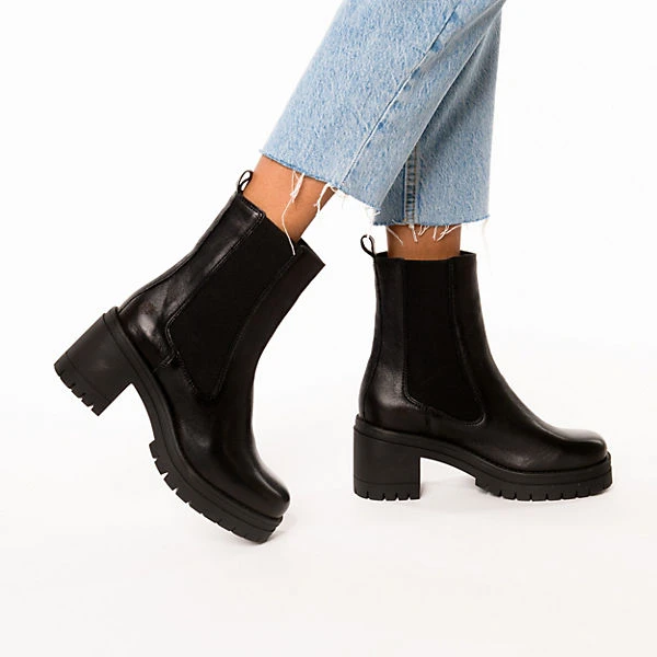 Ergänzen jeden Look: Diese ansprechend gestalteten Chelsea Boots aus dem Hause Apple of Eden. Der Blockabsatz verleiht dem Schuh eine zusätzliche modische Note. Das Fußbett besteht aus natürlich atmungsaktivem Leder, das ein angenehmes Trageerlebnis begünstigt. Dank des warmen Futters ist dieses Paar hervorragend für die kalte Jahreszeit geschaffen. Das Obermaterial ist aus hochwertigem Echtleder. Es handelt sich um ein Modell zum bequemen Hineinschlüpfen.