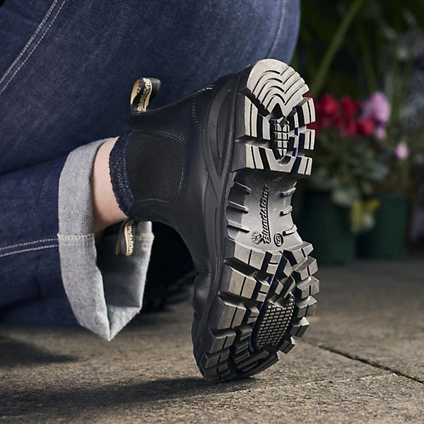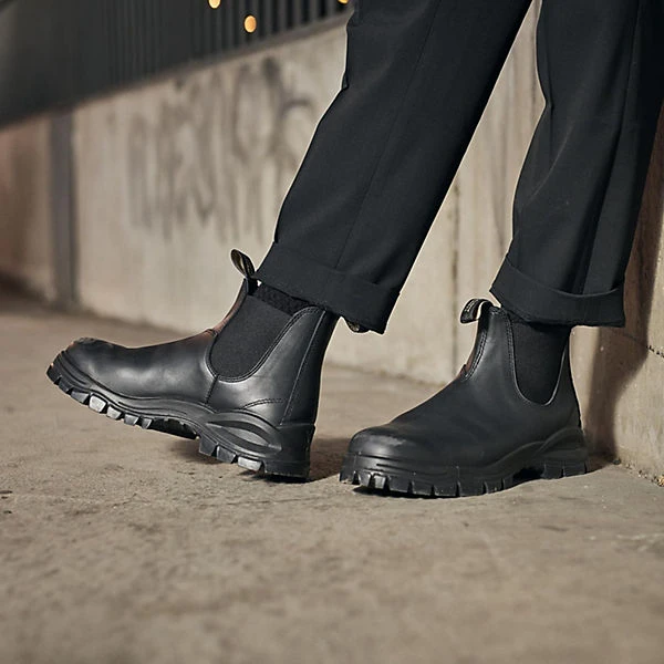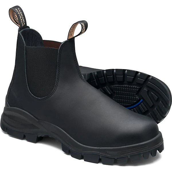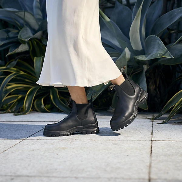 Vervollständigen verschiedene Looks: Die stilsicheren Chelsea Boots der Marke Blundstone. Die wasserabweisende Oberfläche der Schuhe bietet ein angenehmes Tragegefühl auch bei nassem Wetter. Das Fußbett ist bei Bedarf herausnehmbar und austauschbar. Es handelt sich um ein Modell zum bequemen Hineinschlüpfen. Das Obermaterial zeichnet sich durch das echte Rindsleder aus.