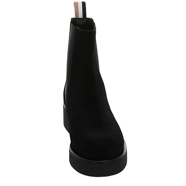 Zeitgemäße BOSS Chelsea Boots. Schlichtes Design kombiniert mit elastischen Seitenbahnen für den leichten Einstieg, zeichnen diese Stiefeletten aus, die aus weichem Leder gefertigt sind. Zuglaschen mit charakteristischen Streifen runden die Winterschuhe ab