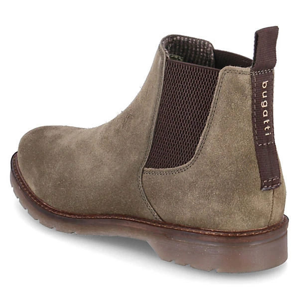Bugatti Herren Stiefeletten/ Chelsea Boots ZELI Grün Rauleder – beidseitige Elastikeinsätze – gepolsterte Decksohle – robuste, vernähte und rutschhemmende Profillaufsohle – Anziehlasche mit Markenprint