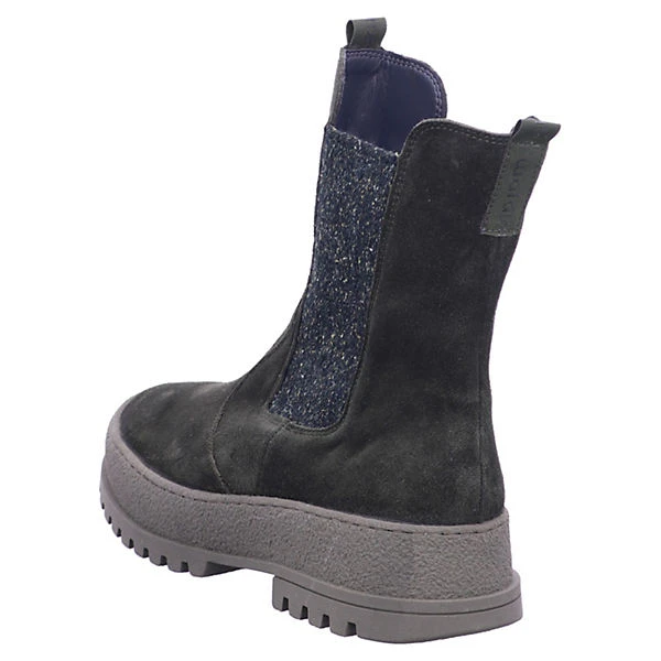 Hochwertiges Veloursleder in modischen Dunkelgrün in Kombination mit grüner Plateausohle gibt den Chelsea Boots Tara von Waldläufer ihren attraktiven Look. Für Wohlbehagen sorgt ein softes Fleecefutter und ein Wechselfußbett. Gefertigt in der Komfortweite H bieten die Boots auch dem vollerem Fuß Platz. Ein schöner Begleiter der in Sachen Tragekomfort und attraktiver Optik keine Kompromisse macht.