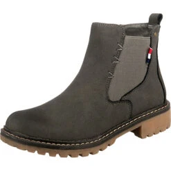 Die modischen Chelsea Boots von der Marke ambellis ergänzen Ihre Garderobe. Die Schuhe sind mit einem Reißverschluss versehen. Der Blockabsatz in komfortabler Höhe sorgt für ein angenehmes Tragegefühl und einen ansprechenden Look.