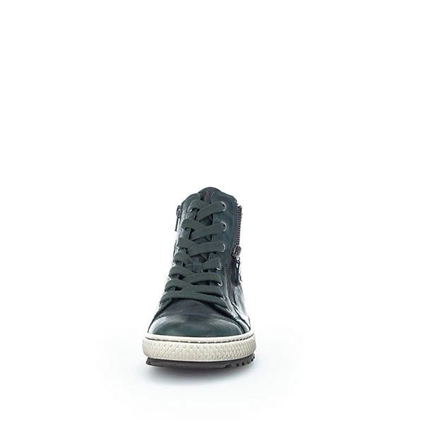 Damen – Stiefel in grün aus Glattleder mit Reißverschluß + Schnürung und Wechselfußbett.