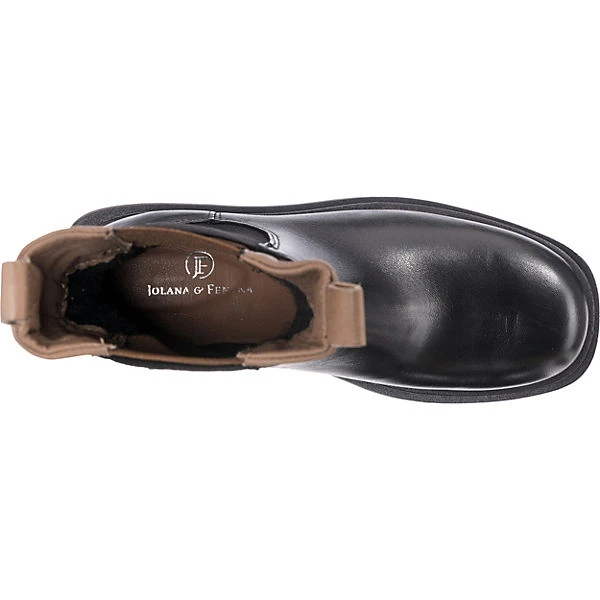 Die ansprechenden Chelsea Boots von der Marke JOLANA & FENENA unterstreichen jeden Look. Dieses Modell kommt ohne jeglichen Verschluss aus, sodass ganz bequem hineingeschlüpft werden kann. Der Blockabsatz kombiniert einen stilsicheren Auftritt mit hohem Komfort. Das Obermaterial zeichnet sich durch das feine, echte Schafsleder aus. Durch das wärmende Futter sind diese Schuhe ideale Begleiter bei kaltem Wetter.