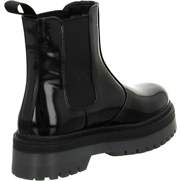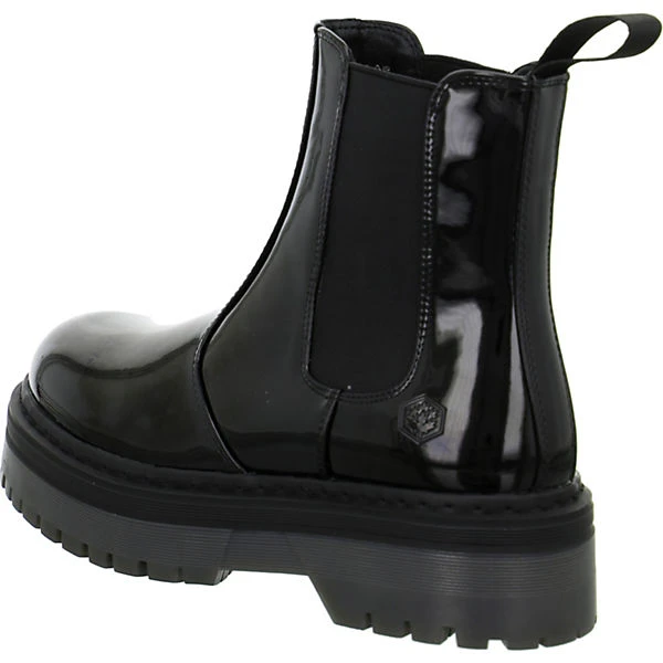 Lumberjack Damen Stiefeletten/ Chelsea Boots Schwarz Textil-Synthetik-Mix – Obermaterial in Lackoptik – elastische Einsätze im seitlichen Schaftbereich – Logoprägung auf der Außenseite im Fersenbereich -verstärkter Zehen- und Fersenbereich – praktische Anziehlasche – gepolsterte Leder-Decksohle – profilierte Laufsohle mit rutschhemmenden Eigenschaften