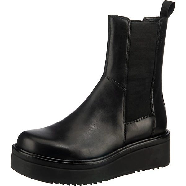 Vagabond Damen Stiefeletten/ Chelsea Boots TARA Schwarz Leder mit Elastikeinsätzen, Anziehlasche, Ziernähten und Plateausohle